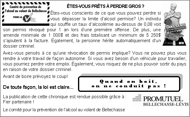 Comité de prévention de l’alcool au volant de Bellechasse (sur le site du 211)