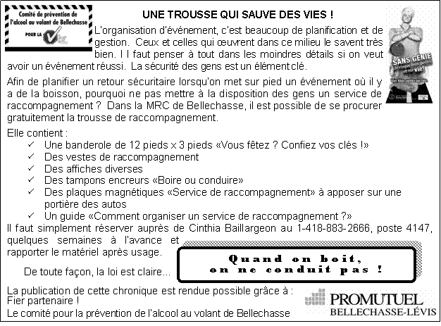 - Les systèmes de raccompagnement évitent les blessures et les accidents fatals en Bellechasse